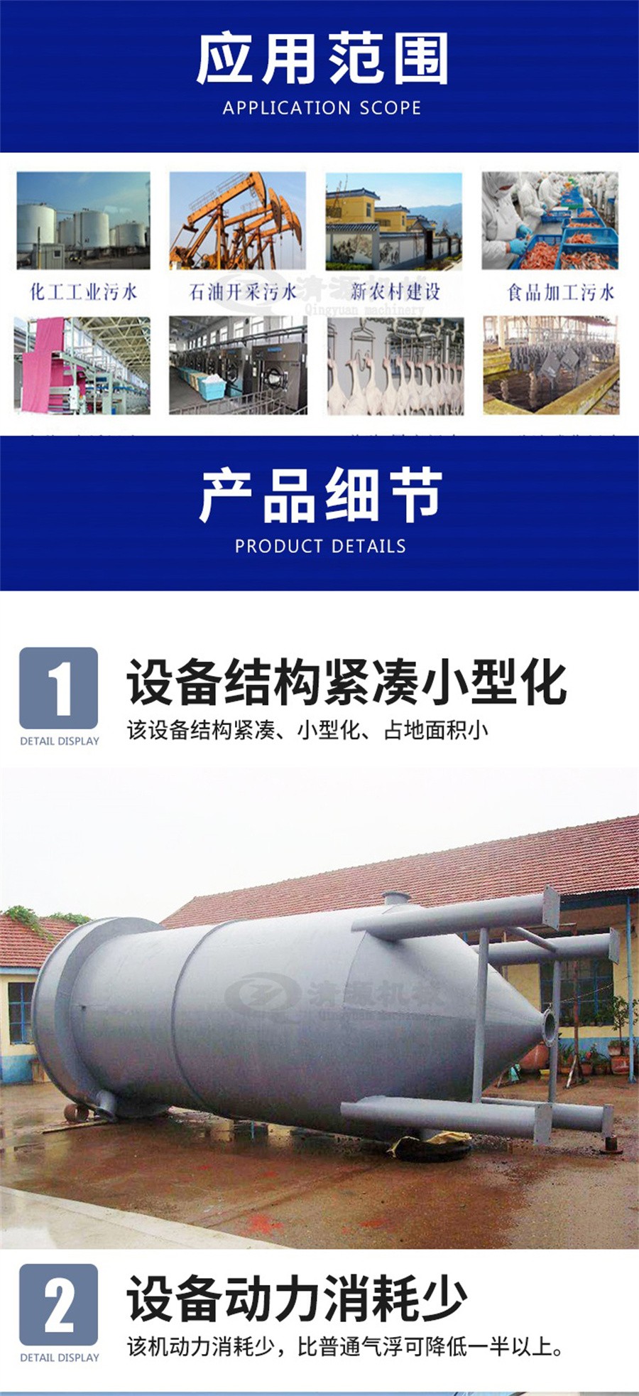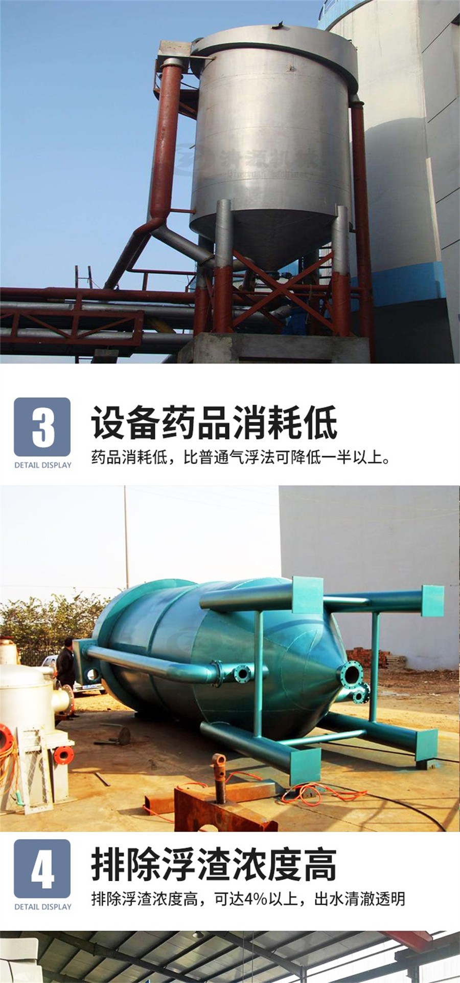 該設(shè)備結(jié)構(gòu)緊湊,小型化、占地面積小:如日處理1000-4000平方厘米紙機(jī)白水量,該設(shè)備高度僅5.5米,占地10平方米,完全可以按照車間內(nèi)部。 動(dòng)力消耗小,比普通氣浮可降低50%以上。 藥品消耗低,比普通氣浮法可降低50%以上。排除浮渣濃度高,可達(dá)4%以上,出水清澈透明,SS去除率達(dá)96%以上,非容性COD可全部去除。