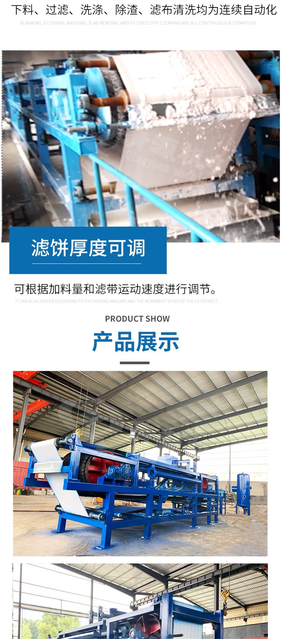 二、真空帶式過(guò)濾機(jī)特點(diǎn):1: 自動(dòng)化程度高;下料. 過(guò)濾. 洗滌. 脫渣. 濾布清洗均為連續(xù)自動(dòng)化,提高生產(chǎn) 效率降低運(yùn)行成本,極大減輕工人勞動(dòng)強(qiáng)度,改善工作環(huán)境。