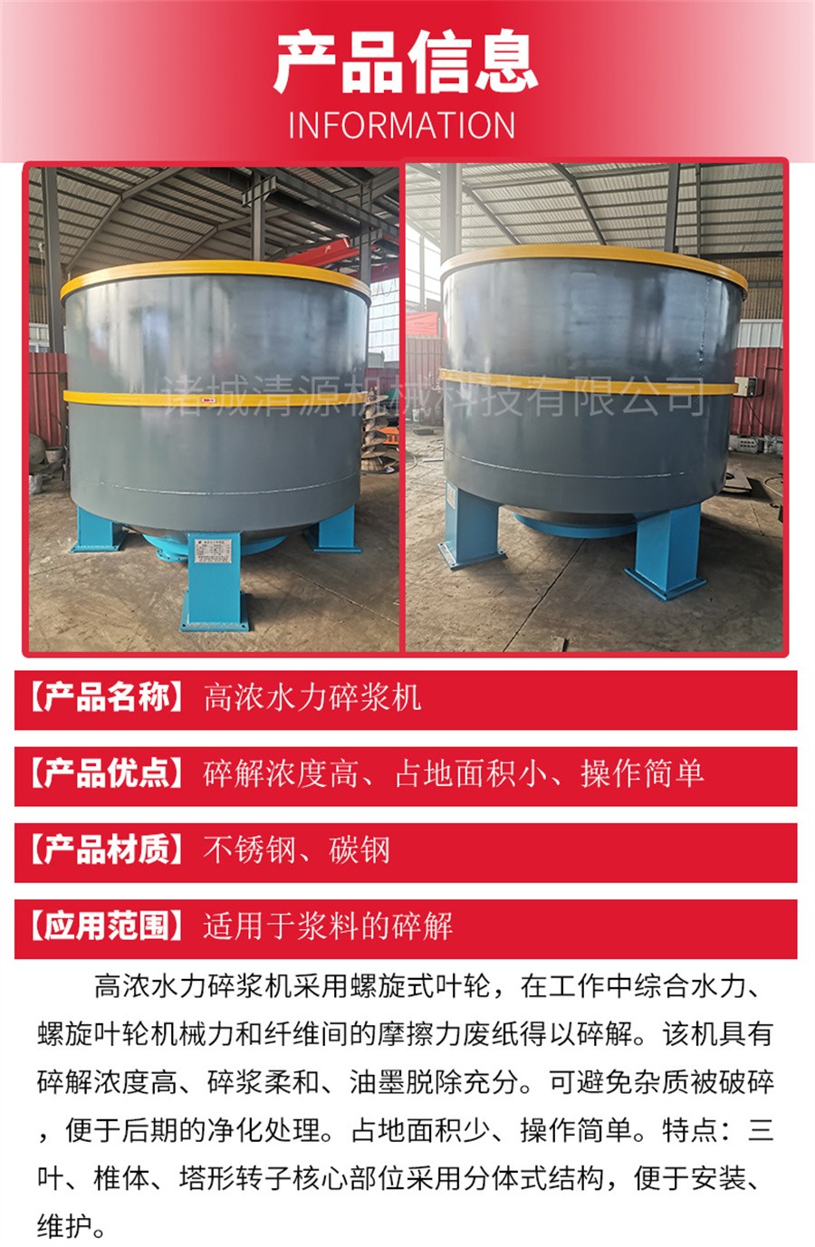 高濃水力碎漿機(jī)主要技術(shù)特征