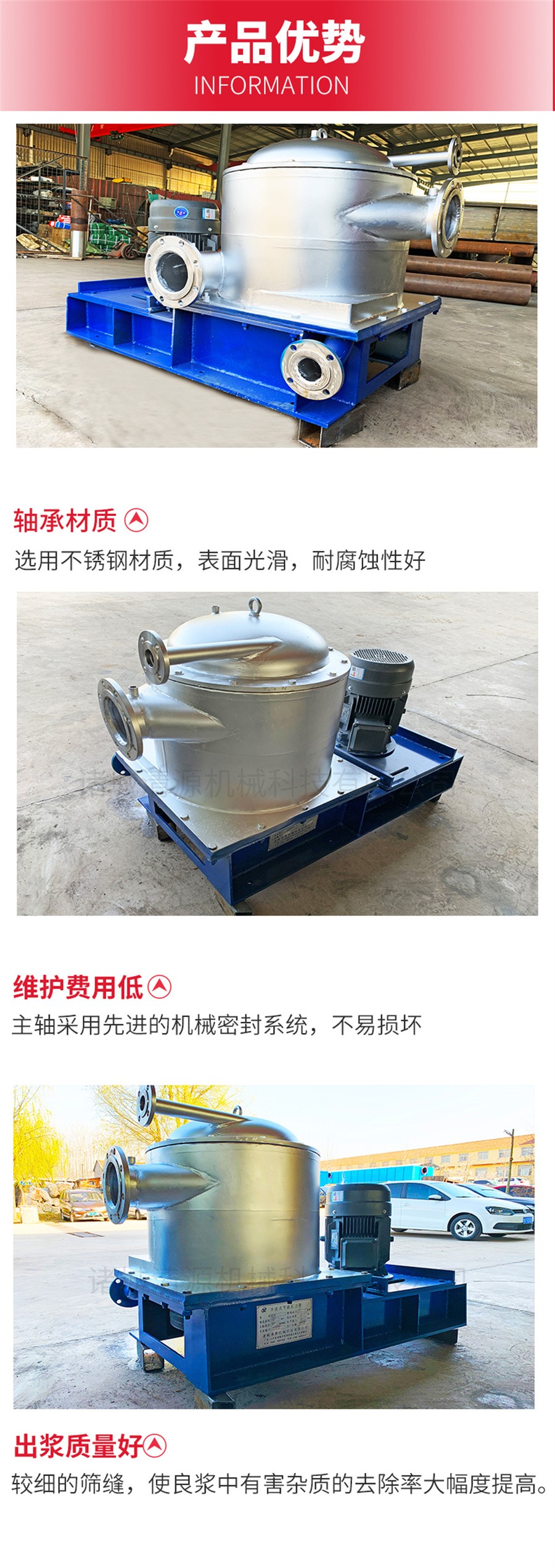 1、 倒錐形內(nèi)筒結(jié)構(gòu),漿料通過篩縫流速恒定;