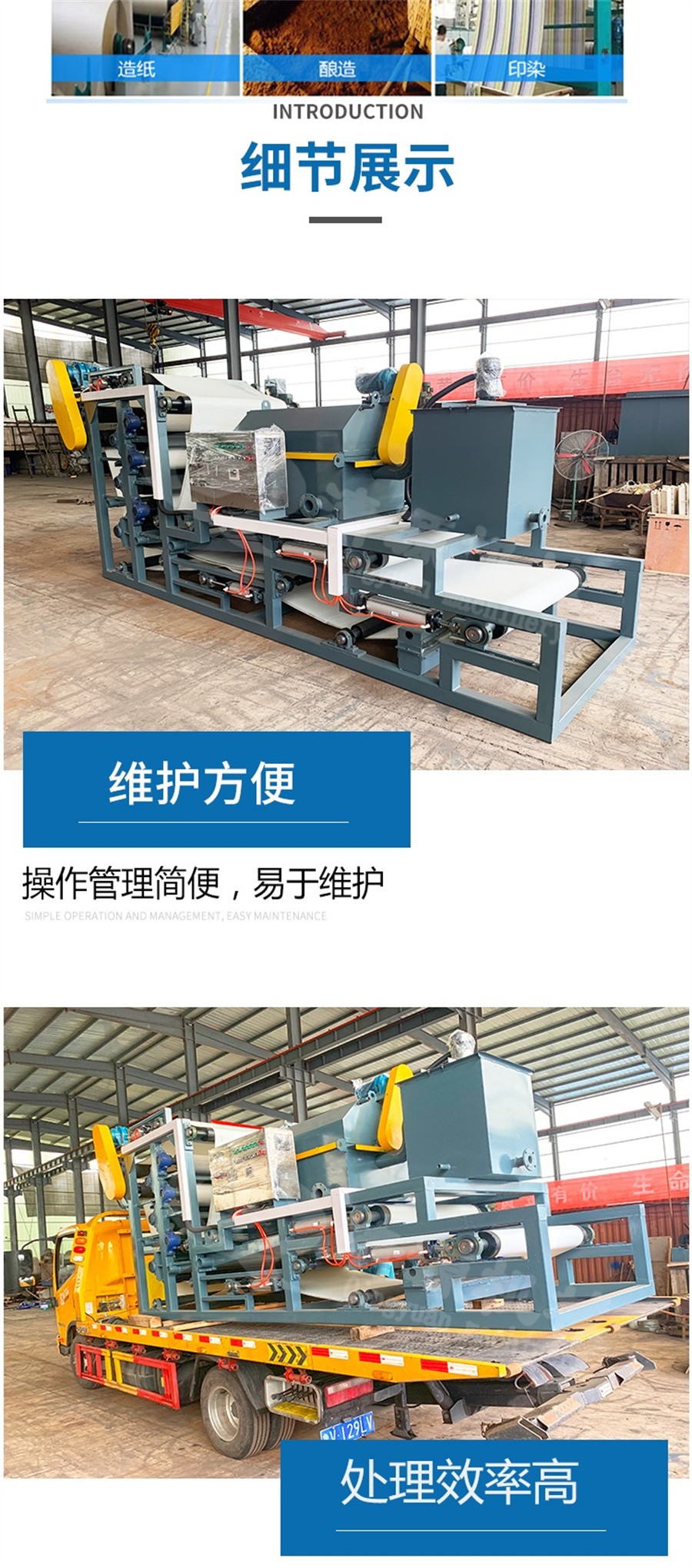 帶式濃縮脫水一體機適用于自來水廠、城市污水處理廠、紡織、印染業(yè)、化工、制藥業(yè)、造紙、皮革業(yè)、畜牧、養(yǎng)殖業(yè)、 釀酒、食品業(yè)、金屬表面加工業(yè)、垃圾掩埋場等工業(yè)污水處理中的污泥脫水。