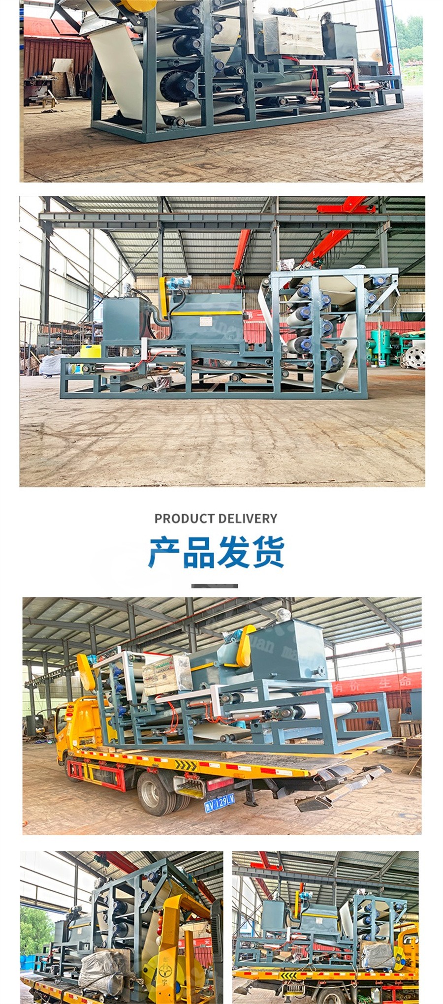帶式濃縮脫水一體機的壓榨段較長,出泥較干。運行過程中,轉鼓的轉速及脫水機的帶速均各自獨立可調。